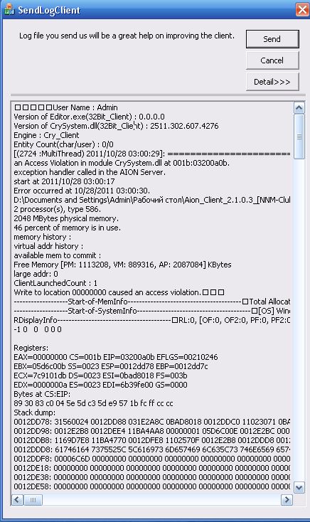 Всем привет, у меня такая проблемка при запуске клиента. После того, как исчезает логотип сервера на котором я играю и появляется логотип NCSoft выскакивает сендлог с таким вот содержанием: